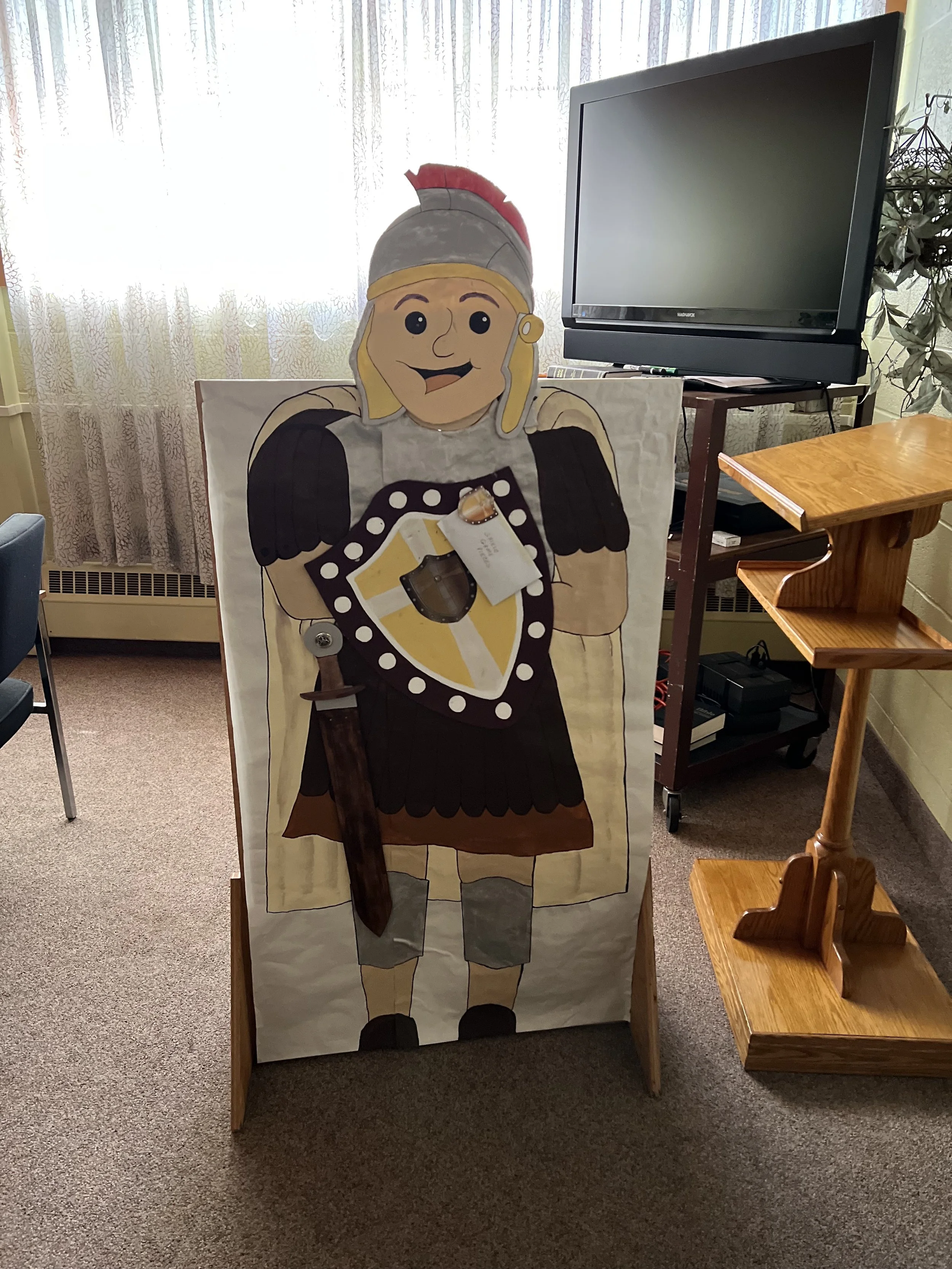 The kids learned about the various parts of the armor of God, created various crafts, sang songs, and took part in various games. We ended the day with a program to show our parents what we learned, followed by supper at church.